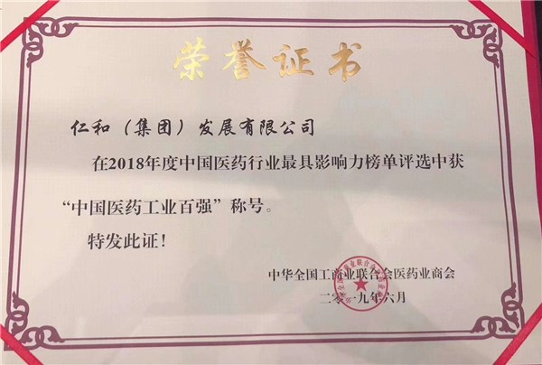 仁和集團榮膺2018年度中國醫藥工業百強等多個獎項